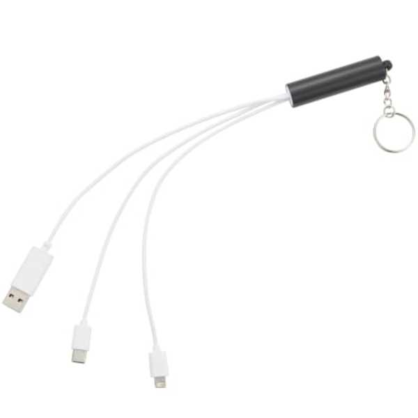 The Route Light Up 3-in-1 Charging Cable features a USB A tip, USB Type C tip, and a 2-in-1 dual compatible tip for both Apple® iOS and Android device