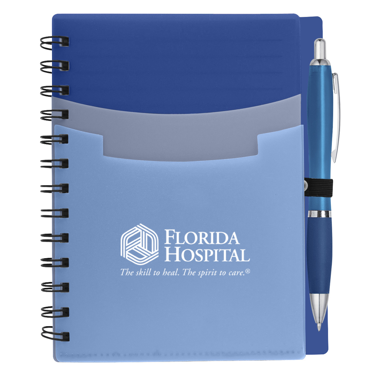 80 Page Lined 5" x 7" Notebook. Bookmark And Elastic Pen Loop With Matching Pen. Polyurethane Cover.