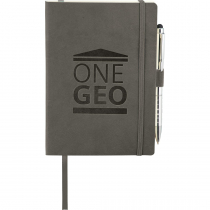 The Revello Soft Bound Journal Bundle Set includes one 5" x 7" Revello Soft Bound Journal (2700-67) and one Preston Dual Ballpoint Stylus (1065-08), bringing two classic essentials together. The included UltraHyde notebook has a document pocket on its interior back cover, contains 80 sheets of cream lined paper, and shuts with a built-in elastic closure. The journal also contains an integrated pen loop and ribbon page marker. The included stylus is eligible for free laser set-up.