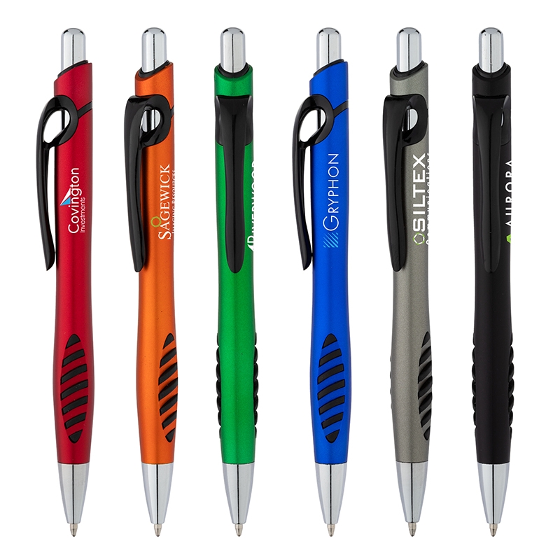 Gift the Spokane Plunge-Action Ballpoint Pen to your new hires or take them to your next tradeshow as a giveaway for customers. The D-ring clip design